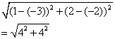 Find the distance between the points A(1, 2) and B(-3, -2).