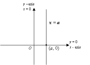 A line that is parallel to the y-axis and has a x-intercept of a has the equation of x = a. The line is a vertical line that has no slope and no y-intercept. The slope is also said to be undefined.