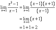 Instead, we need to do some preliminary algebra. We factor the numerator as a difference of squares and then cancel out the common term (x – 1)