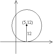 For the circle to touch the x-axis at only one point, the x-axis must be a tangent to the circle. A tangent is perpendicular to the radius at the point of contact. So the radius must be 12