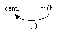 There is 1 “jump” to the left from millimeter to centimeter