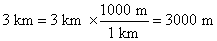 3 km = 3 × 1,000 = 3,000 m