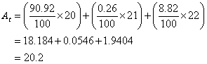 \(A_{r}=\frac{\text{Sum of (Isotope Mass}\times \text{Abundance)}}{100}\)