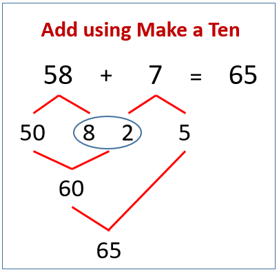 The following example shows how to add by making a ten. Scroll down the page for more examples and solutions.