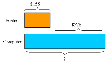 Here are some examples of addition word problems that can be solved in two steps. We will illustrate how block diagrams can be used to help you to visualize the addition word problems in terms of the information given and the data that needs to be found. Block diagrams are used in Singapore Math.