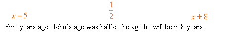 Five years ago, John’s age was half of the age he will be in 8 years. How old is he now?
