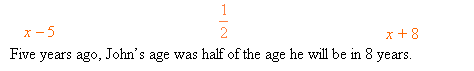 Five years ago, John’s age was half of the age he will be in 8 years. How old is he now?