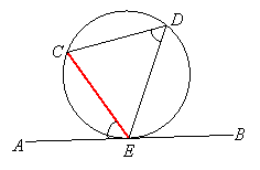 In the following diagram, the chord CE divides the circle into 2 segments. Angle CEA and angle CDE are angles in alternate segments because they are in opposite segments.