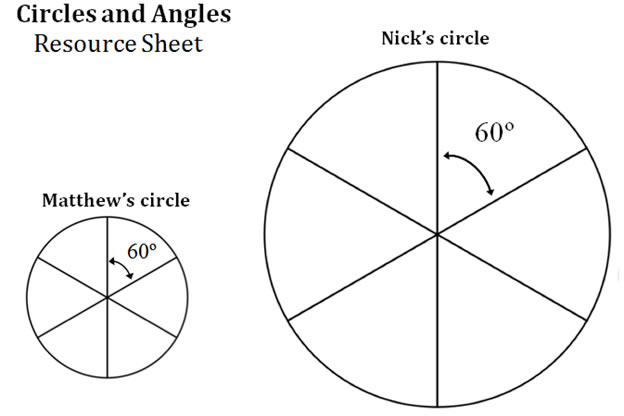 The resource sheet Circles and Angles shows the work that Matthew and Nick did.