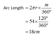 Arc Length = \(\frac{θ}{360 ^\circ} \times 2\pi r\)