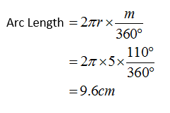 If the radius of a circle is 5 cm and the measure of the arc is 110˚, what is the length of the arc?