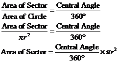 Recall that the angle of a full circle is 360˚ and that the formula for the area of a circle is πr2.
