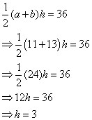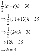 Given that the area of the following trapezoid is 36. Find the value of h.