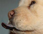 The Chow is a sturdily built dog that is square in profile with broad skull and small, triangular, erect ears that are rounded at the tip. It has a very dense double coat that is either smooth or rough. Its fur is particularly thick around the neck, forming a sort of mane. The fur may be one of five colors including red, black, blue, cinnamon, and cream. Their eyes should be deep set and almond in shape. Chows are distinguished by their very straight hind legs and their blue-black/purple tongue. The Chow’s lips are also blue. One other distinctive feature is their tail, which has thick hair and lies curled on its back.