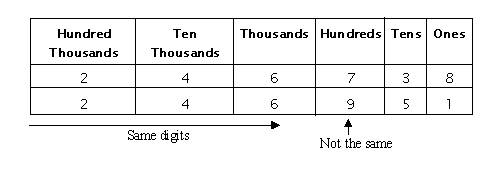 The following diagram shows how to compare numbers. Scroll down the page for examples and solutions on how to compare and order numbers.