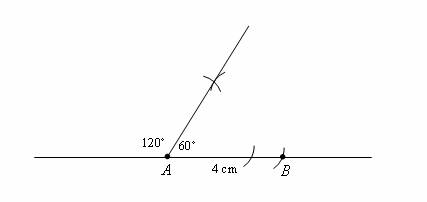 Step 1: Construct a line segment AB = 4 cm. Construct a 60˚ angle at point A.