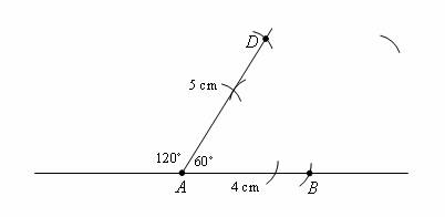 Construct a parallelogram ABCD with sides AB = 4 cm and AD = 5 cm and angle A = 60˚.