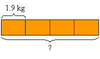 The mass of a jar of sugar is 1.9 kg. What is the total mass of 4 such jars of sugar?