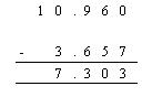 Evaluate 10.96 - 3.657