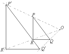 The figure shows two similar triangles PQR and P’Q’R’. Triangle P’Q’R’ is a dilation of triangle PQR. We say that triangle PQR is transformed onto triangle P’Q’R’ by a dilation with center at O and scale factor ![]()