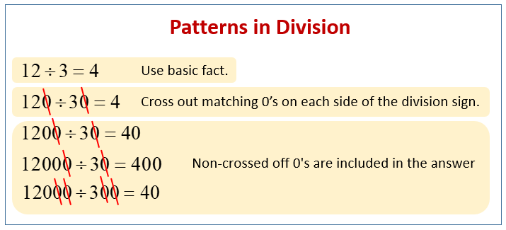 The following diagram shows some division patterns that can be used as division shortcuts. Scroll down the page for more examples and solutions.