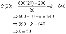 20 units were produced at the cost of $640. Substitute x =20