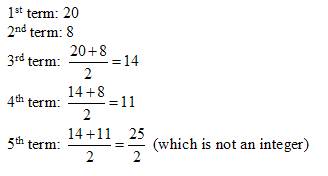 The 3rd term and each term thereafter is the average of the 2 terms immediately preceding it