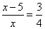 4(x – 5) = 3x ⇒ 4x – 20 = 3x ⇒ x = 20