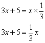 The sum of 3x and 5 is equal to the product of x and ![]()