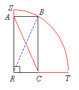 SBT is one quarter of a circle with center R and radius 6