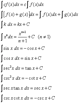 Here are some basic integration formulas you should know.