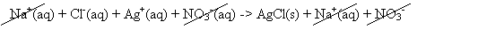 Na+(aq) + Cl-(aq) + Ag+(aq) + NO3-(aq) → AgCl(s) + Na+(aq) + NO3-