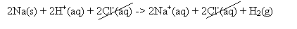 2Na(s) + 2H+(aq) + 2Cl-(aq) → 2Na+(aq) + 2Cl-(aq) + H2(g)