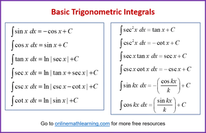 Fun game to to test your knowledge of trig integration in calculus. This Trig Integration Quiz and Game is a great way to practice and put your skills to the test in a fun environment. Find the integral of trigonometric functions. Memorizing the basic anti-derivatives and applying specific techniques (often involving trigonometric identities) for integrals involving powers of these functions
