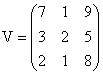 Example: V is a square matrix of order 3 × 3