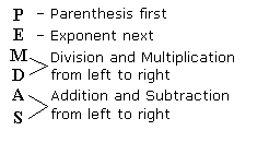 If the expression consists of parenthesis, exponents, +, –, × and ÷, then the operations MUST be performed in the following order.