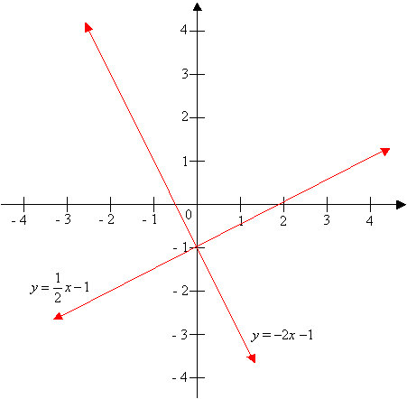 In the Coordinate Plane, two lines are perpendicular if the product of their slopes (m) is –1. The slopes are negative reciprocals of each other.
