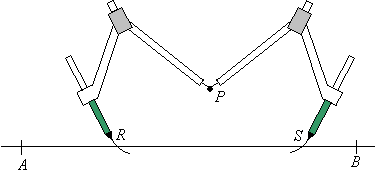 Step2: Without changing the width of the compasses, put the sharp end of the compasses at R and draw an arc on the other side of AB compared with P. Do the same at S and make sure that the second arc intersects the first arc.