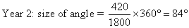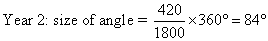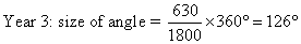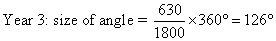 Step 1: Calculate the angle of each sector, using the formula.