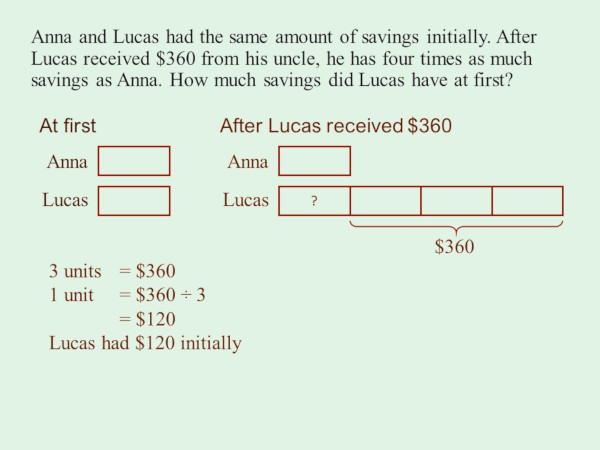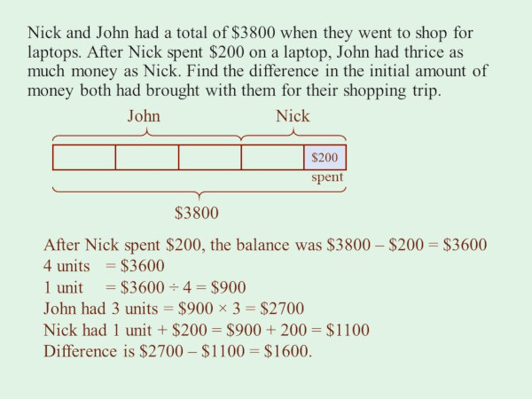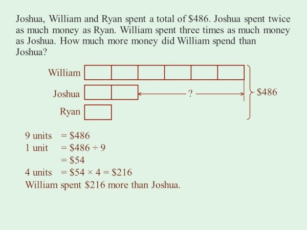 Singapore Math Problem Sums - Whole Number - Comparison Model