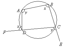 Property 2: The exterior angle of a cyclic quadrilateral is equal to the interior opposite angle.