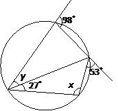 y + 27˚ = 53˚ (Corresponding opposite angles of a cyclic quadrilateral)