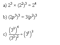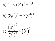 We will now consider combined operations of multiplication and division on numbers in exponent form, using all the rules of exponents introduced above.