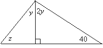 ⇒z + 25 + 90 = 180 ⇒ z = 65