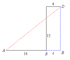 The direct path from A to D is the hypotenuse of the right triangle ADE.