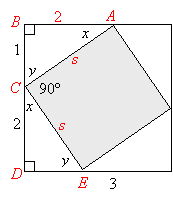 We can deduce that the unshaded triangles are congruent because of the ASA rule. This means the length of AB = CD = 2