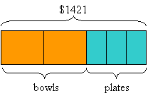 Two bowls and three plates cost $1421. The cost of the plate is half the cost of the bowl. What is