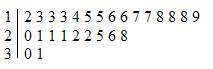 Answer questions based on given stem-and-leaf plots or frequency tables.
