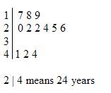 The following stem-and-leaf plot shows the ages of a group of people in a room.