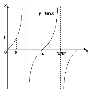 We know that for a tangent graph, tan θ = 1 when θ = 45˚ and 225˚. So, b = 45˚.